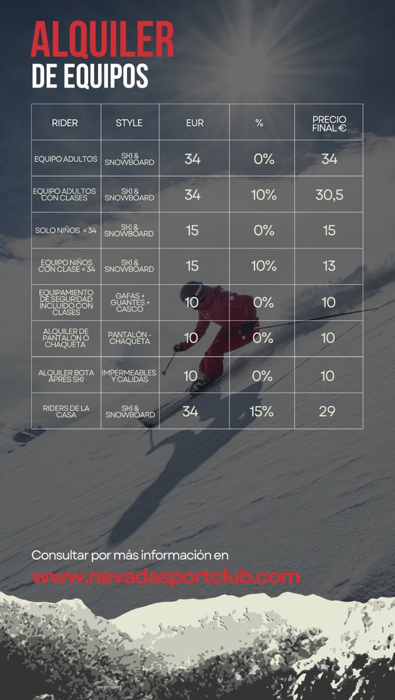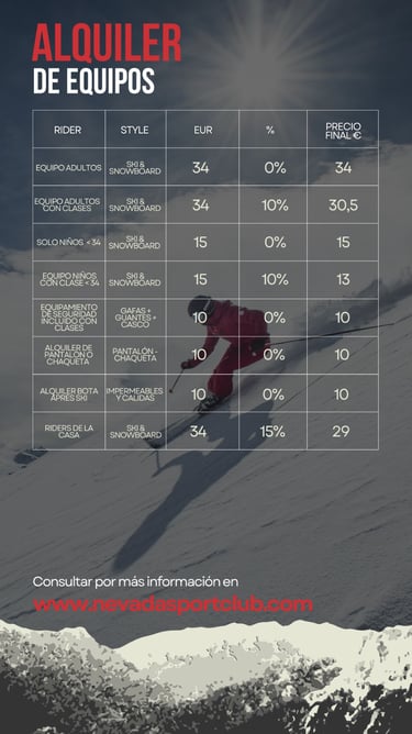 Alquila el mejor equipo para disfrutar de la nieve con nosotros en Nevada Sport Club.